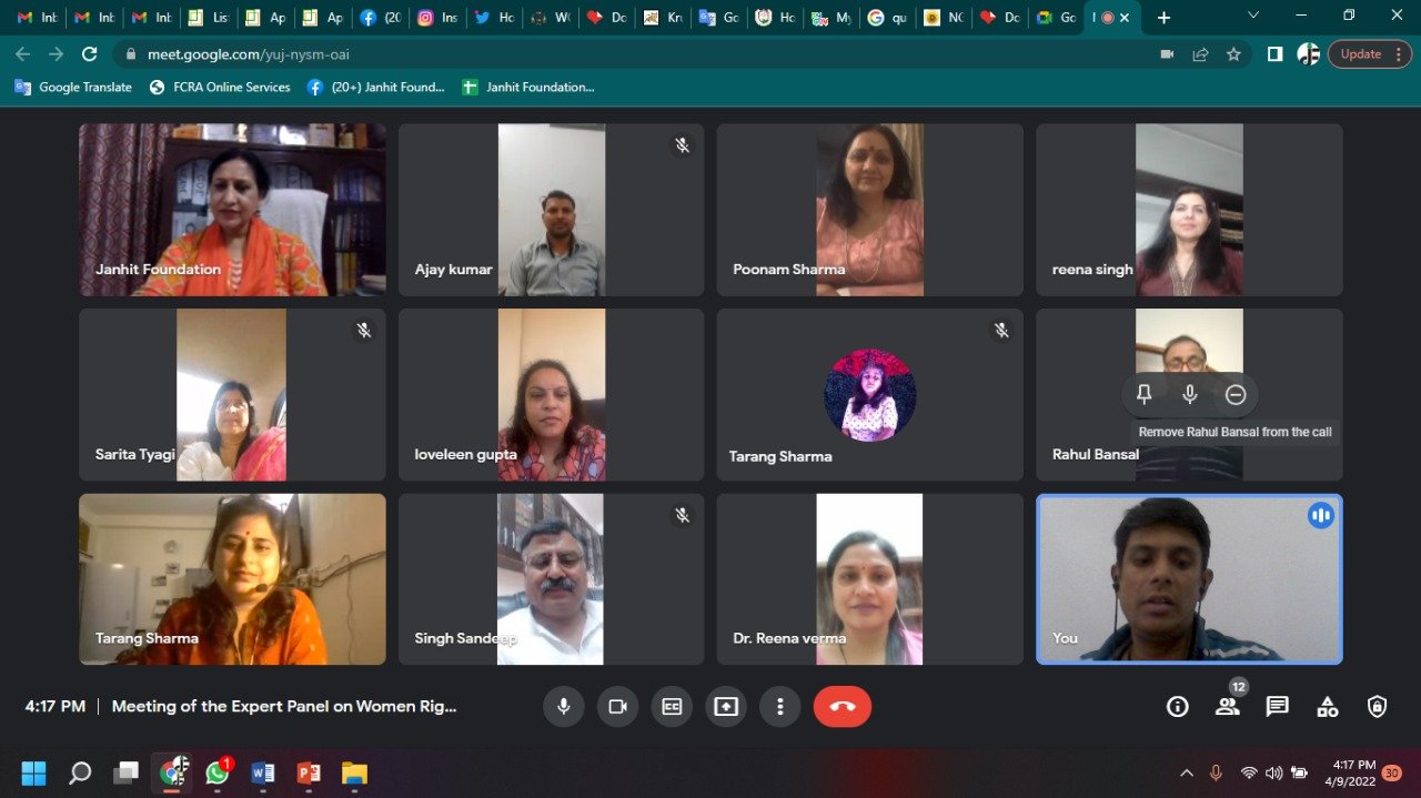 मेरठ। जनहित फाउंडेशन की जनहित महिला हेल्प लाइन के लिए बने एक्सपर्ट पैनल आन वूमेन राइट्स की आन लाइन मीटिंग…