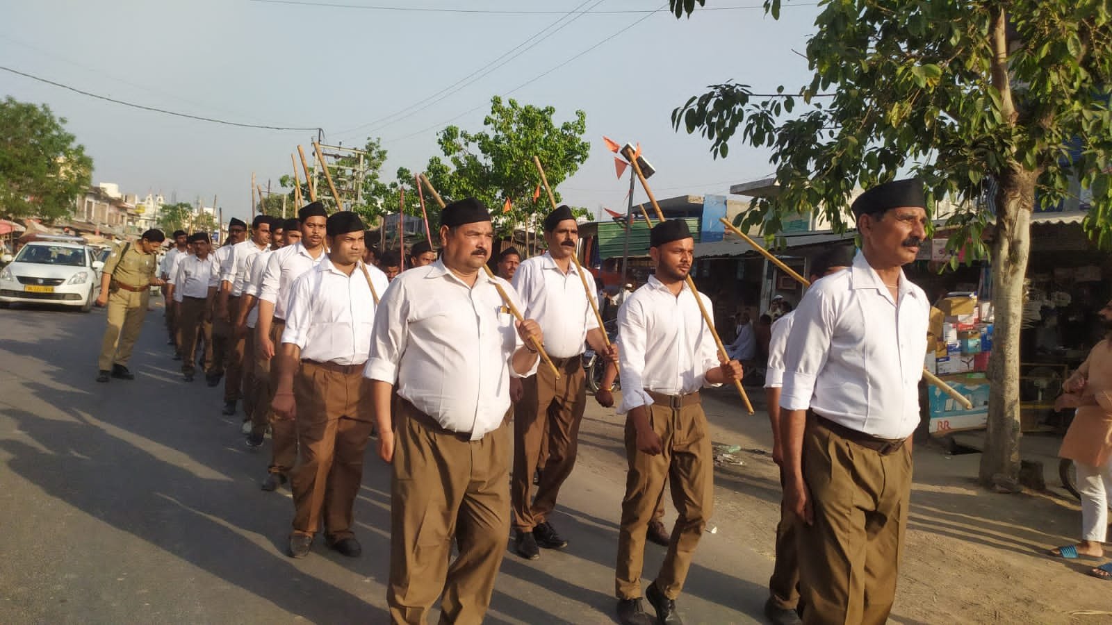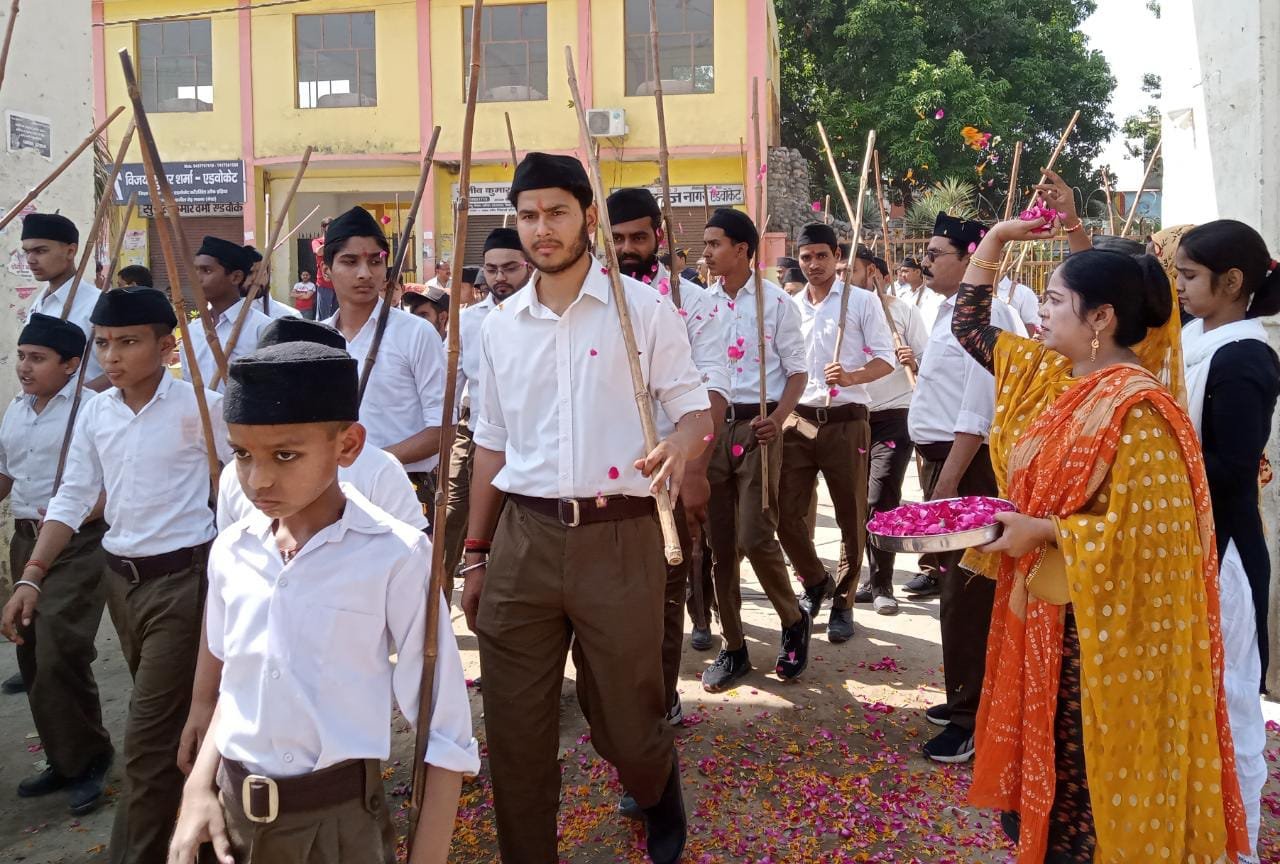 राष्ट्रीय स्वयं सेवक संघ द्वारा नगर में निकाला गया विशाल पथ संचलन,कस्बे में अलग-अलग स्थानों पर फूलों से हुआ स्वागत…