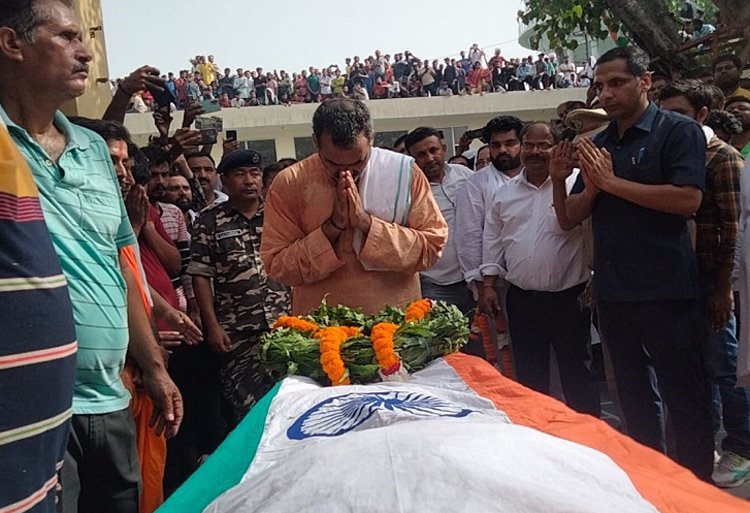 अश्रुपूरित नेत्रों से हजारों लोगों ने अंतिम यात्रा में शामिल होकर दी श्रद्धांजलि -शहीद जवान के शव पर केन्द्रीय राज्यमंत्री…