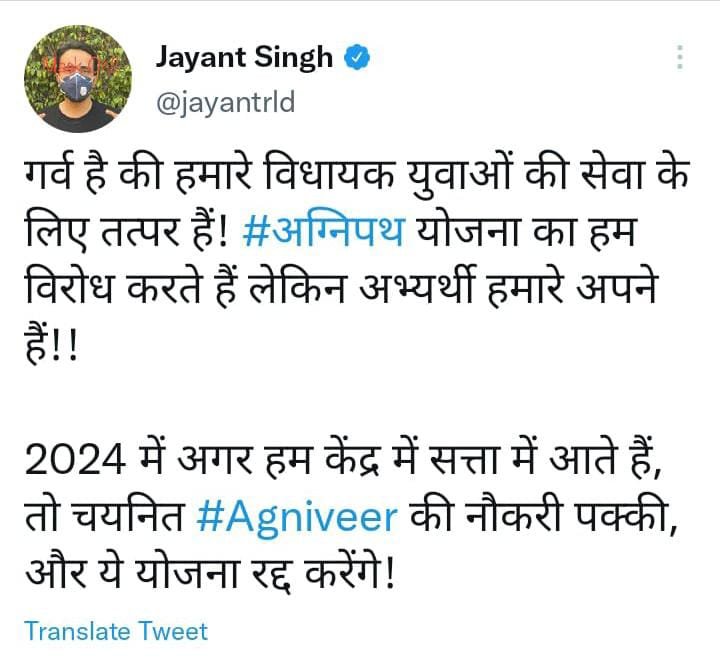 जयंत ने कहा-2024 में हम सत्ता में आए, तो अग्निवीर की नौकरी पक्की और योजना रद्द मुजफ्फरनगर। 2024 लोकसभा चुनाव…