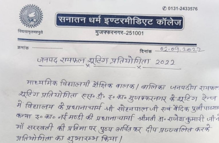 मुजफ्फरनगर शहर के रोड़वेज बस स्टेंड़ के पास समीप एसड़ी इंटर कॉलेज मुजफ्फरनगर में शूटिंग प्रतियोगिता का आयोजन किया गया।…