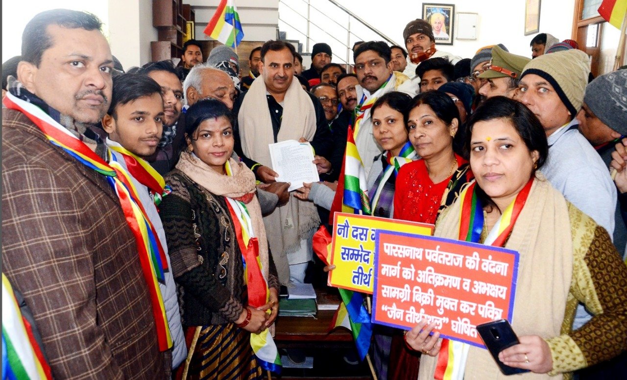 सम्मेद शिखर जी को पर्यटन स्थल घोषित किए जाने के विरोध में जैन समाज के लोगो ने मंत्री आवास घेरा