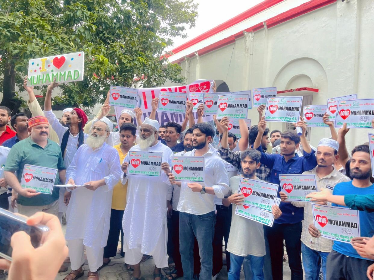 UP के कानपुर में “आई लव मोहम्मद” पोस्टर लगाने को लेकर पुलिस द्वारा की गई कार्रवाई के विरोध में बहराइच…