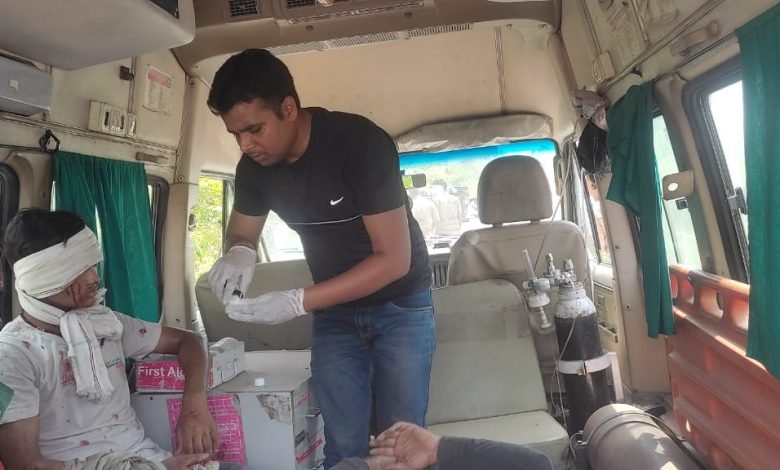 ईएमटी रतनेश कुमार ने घायलों की हालत देखते हुए, उनका प्राथमिक उपचार कराना शुरू कर दिया।