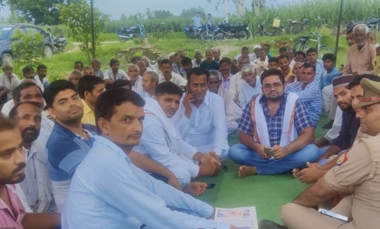 मंदिर का निर्माण रुकवाने पर भड़के ग्रामीण,सैंकड़ो लोगो ने दिया धरना, मौके पर पहुंचे अफसरान