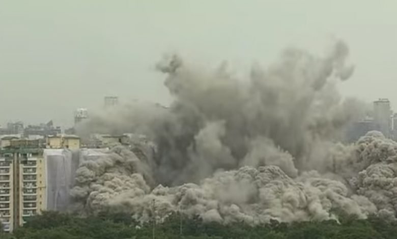 चंद पलो में ही जमींदोज हो गई कुतुब मीनार से भी ऊंची इमारत, विस्फोटक से उड़ाया नोएडा का ट्विन्स टावर