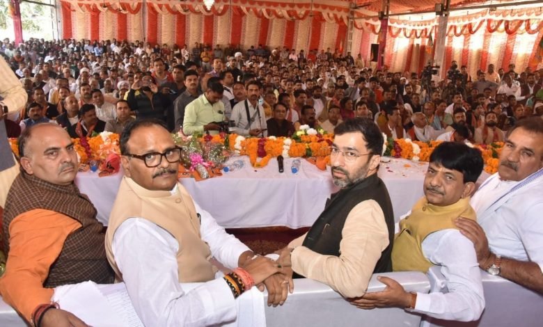 मुजफ्फरनगर।खतौली विधानसभा उप चुनाव की नामांकन सभा को संबोधित करते हुए मंत्री कपिल देव ने कहा कि बाहुबली का दमन राजकुमारी देवी के हाथों से होगा और भाजपा इस सीट को दोगुनी वोटों से जीतेगी। मुजफ्फरनगर जिले की खतौली विधानसभा सीट पर उप चुनाव के लिए भाजपा की प्रत्यानशी राजकुमारी सैनी ने अपना नामांकन दाखिल किया। प्रदेश के उप मुख्यमंत्री बृजेश पाठक खतौली पहुंचे और चुनाव को लेकर उन्होंने आर्यन बैंकट हॉल में भाजपा द्वारा आयोजित जनसभा को संबोधित किया।
