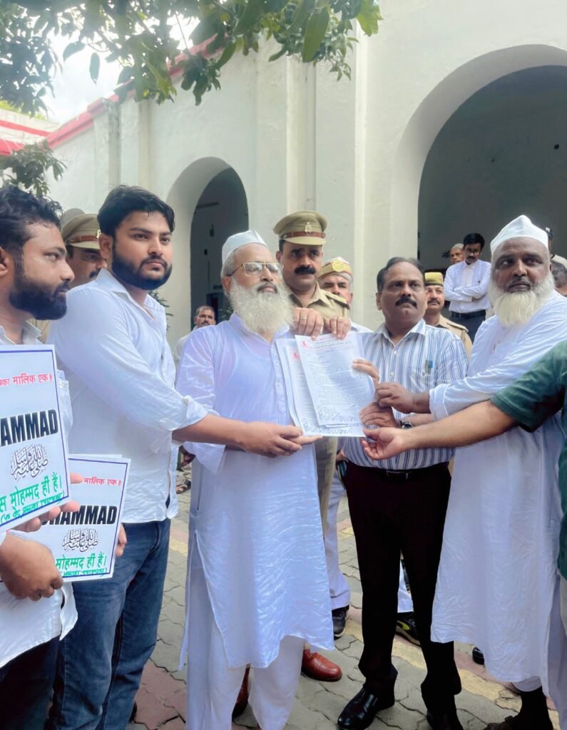UP के कानपुर में “आई लव मोहम्मद” पोस्टर लगाने को लेकर पुलिस द्वारा की गई कार्रवाई के विरोध में बहराइच मे ऑल इंडिया मिल्ली काउंसिल ने राष्ट्रपति को संबोधित ज्ञापन नगर मजिस्ट्रेट को सौंपा। संगठन के जिला अध्यक्ष मौलाना अकील उल्लाह शाहिद नदवी के नेतृत्व में सैकड़ों समर्थकों ने ज्ञापन सौंपते हुए मुस्लिम समुदाय के विरुद्ध हो रहे कथित उत्पीड़न पर चिंता जताई।