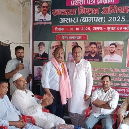 UP क़े ज़िला बागपत क़े असारा गांव में हनीफ एजुकेशनल एंड वेलफेयर सोसाइटी मुज़फ्फरनगर द्वारा एक भव्य सम्मान समारोह का आयोजन किया गया। यह कार्यक्रम मास्टर अली हसन के आवास पर संपन्न हुआ, जिसमें गांव के कब्रिस्तान की सफाई में योगदान देने वाले सामाजिक संगठनों और कार्यकर्ताओं को प्रशस्ति-पत्र एवं मेडल देकर सम्मानित किया गया।