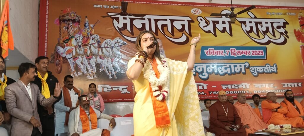 UP के ज़िला मुज़फ्फरनगर की धर्मनगरी शुक्रतीर्थ स्थित हनुमंत धाम मे रविवार को सनातन धर्म संसद का आयोजन हिन्दू संघर्ष समिति द्वारा किया गया।जिसमें अनेक साधु संतो ने भाग लिया कार्यक्रम मे भारत को हिन्दू राष्ट्र घोषित करने व योगी आदित्यनाथ को देश का प्रधानमंत्री बनाने की मांग प्रखर रूप से उठाई गयी साथ ही 12 सूत्रीय मांगो का प्रस्ताव भी पारित किया गया। साथ ही कार्यक्रम मे सहयोगी कार्यकर्ताओं को मोमेंटो भेंट कर सम्मानित किया गया।