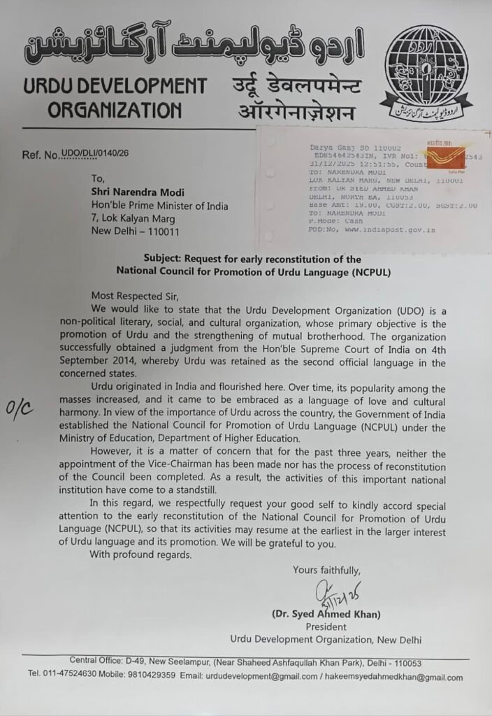 एनसीपीयूएल की जल्द गठन की मांग, उर्दू डेवलपमेंट ऑर्गनाइजेशन ने पीएम मोदी को लिखा पत्र