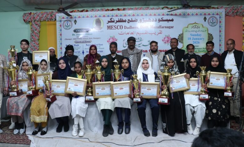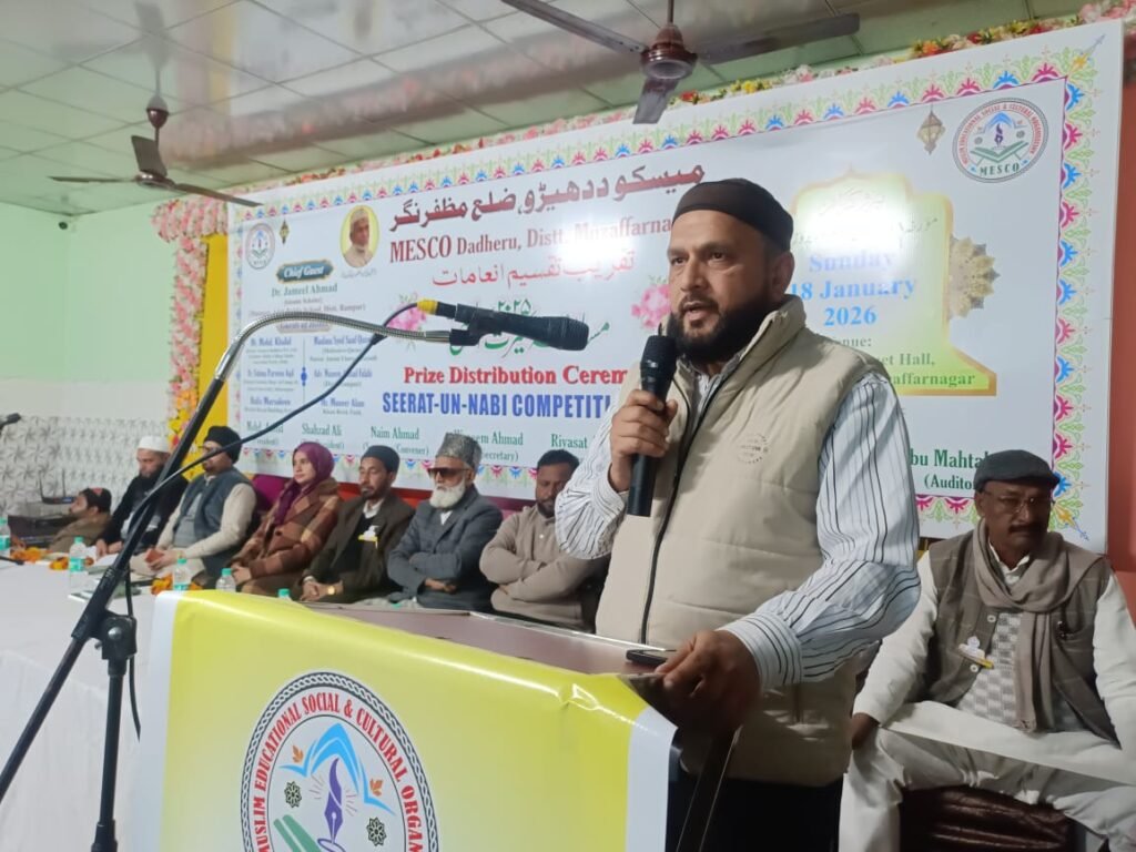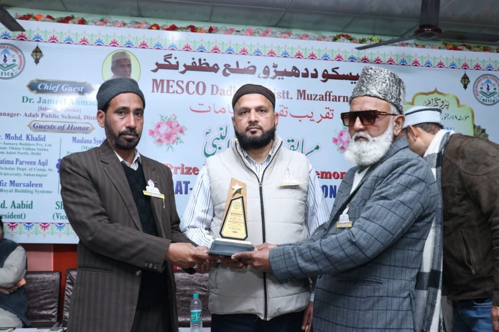 UP के मुज़फ्फरनगर मे मुस्लिम एजुकेशनल सोशल एंड कल्चरल सोसायटी (मेस्को दधेडू) के तत्वावधान में आयोजित सीरत-उन-नबी प्रतियोगिता का भव्य पुरस्कार वितरण समारोह गुडलक बैंक्वेट हॉल, चरथावल रोड, मुज़फ्फरनगर में बड़े ही उत्साह और गरिमामय माहौल में संपन्न हुआ। इस अवसर पर जिले के टॉपर विद्यार्थियों के साथ-साथ 50 प्रतिशत या उससे अधिक अंक प्राप्त करने वाले छात्र-छात्राओं को पुरस्कार, प्रशस्ति पत्र एवं आकर्षक उपहार प्रदान कर सम्मानित किया गया।