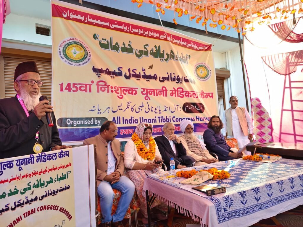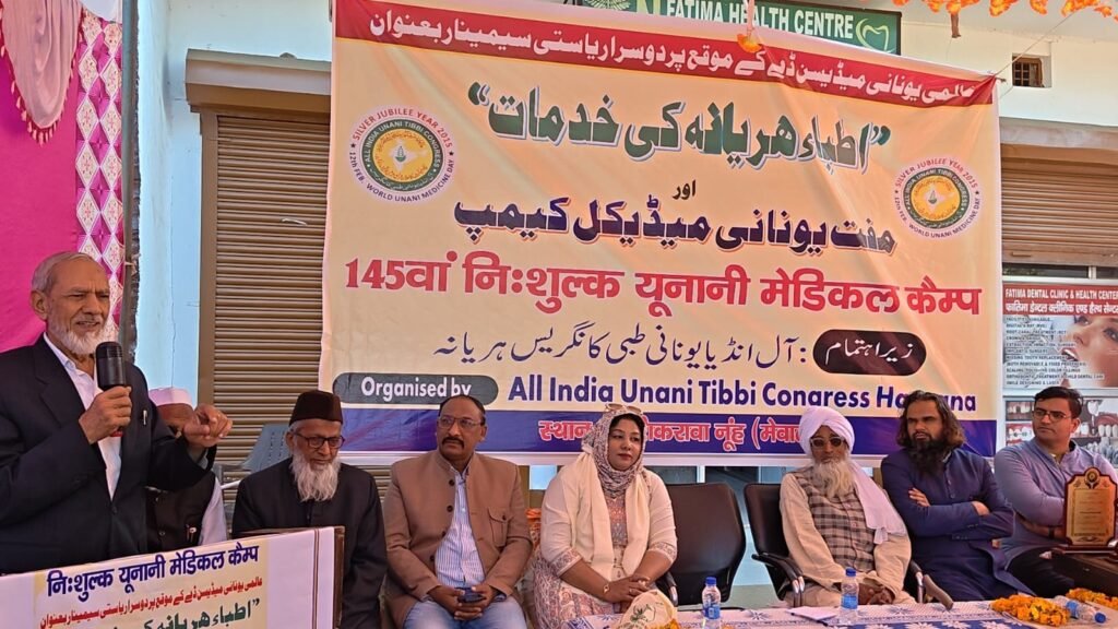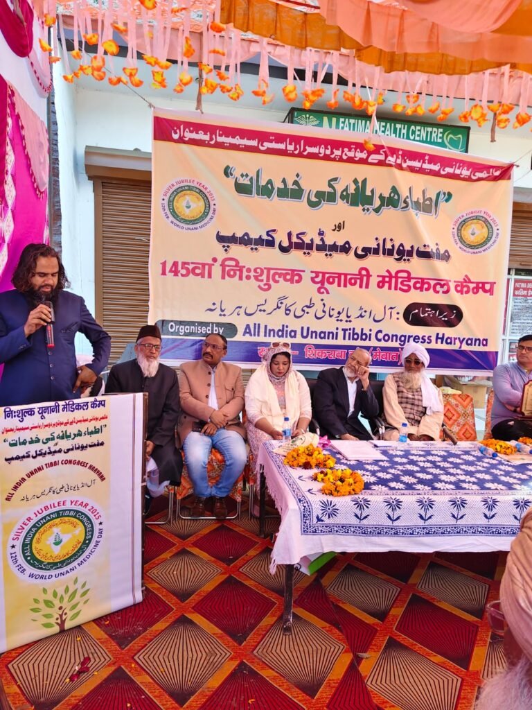 मेवात – हरियाणा। विश्व यूनानी चिकित्सा दिवस के अवसर पर ऑल इंडिया यूनानी तिब्बी कांग्रेस हरियाणा की ओर से फातिमा हेल्थ केयर, गांव शिकरावा में दूसरा राज्य स्तरीय सेमिनार एवं 145वां निःशुल्क यूनानी चिकित्सा शिविर आयोजित किया गया। सेमिनार का विषय “अतिब्बा-ए-हरियाणा की सेवाएं” रहा।
