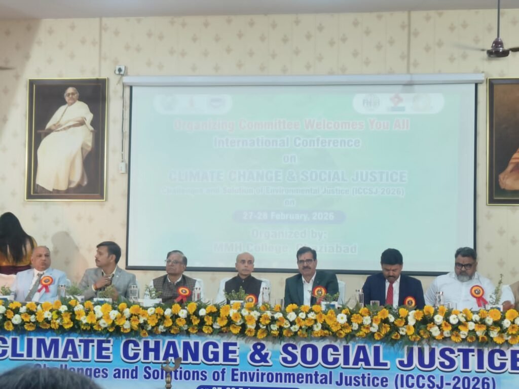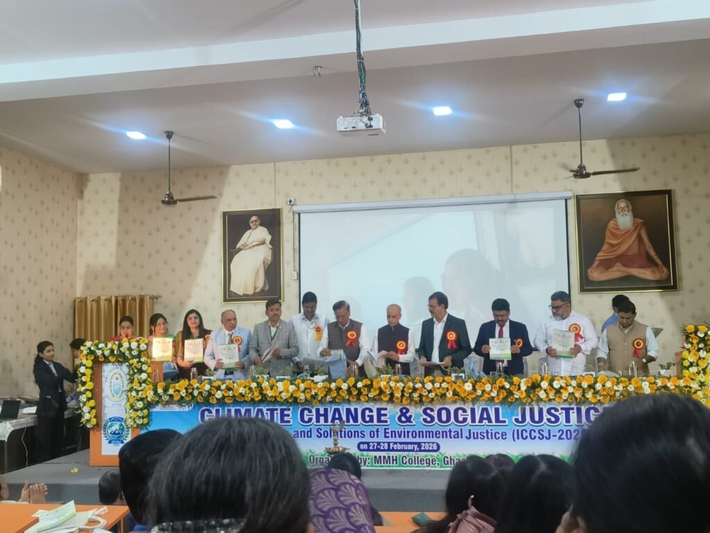 गाजियाबाद। रसायन विज्ञान विभाग, एम.एम.एच. कॉलेज, गाजियाबाद द्वारा 27-28 फरवरी 2026 को “क्लाइमेट चेंज एंड सोशल जस्टिस: चैलेंजेस एंड सॉल्यूशंस ऑफ एनवायरनमेंटल जस्टिस (जलवायु परिवर्तन एवं सामाजिक न्याय: चुनौतियां, समाधान एवं पर्यावरणीय न्याय)” विषय पर अंतरराष्ट्रीय संगोष्ठी का आयोजन किया गया। कार्यक्रम आईसीएसएसआर (निक्सी, नई दिल्ली), आईआईएम नई दिल्ली तथा सेंट्रल बैंक ऑफ इंडिया के सहयोग से संपन्न हुआ।