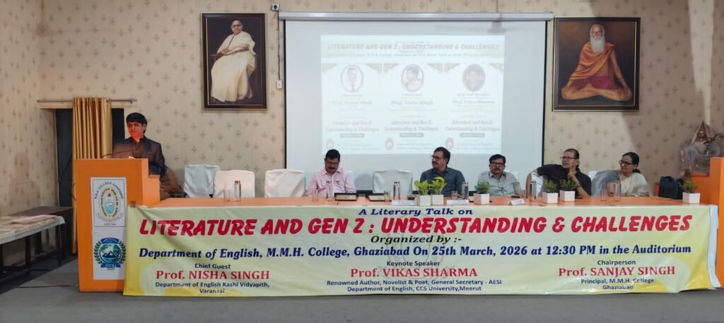 गाज़ियाबाद। एम.एम.एच. कॉलेज, गाज़ियाबाद के अंग्रेज़ी विभाग द्वारा 25 मार्च 2026 को “साहित्य और जेन-ज़ी: समझ और चुनौतियाँ” विषय पर एक महत्वपूर्ण साहित्यिक व्याख्यान का आयोजन महाविद्यालय के ऑडिटोरियम में किया गया। कार्यक्रम में प्राध्यापकों और विद्यार्थियों ने उत्साहपूर्वक भाग लेकर विषय पर गंभीर चर्चा की।