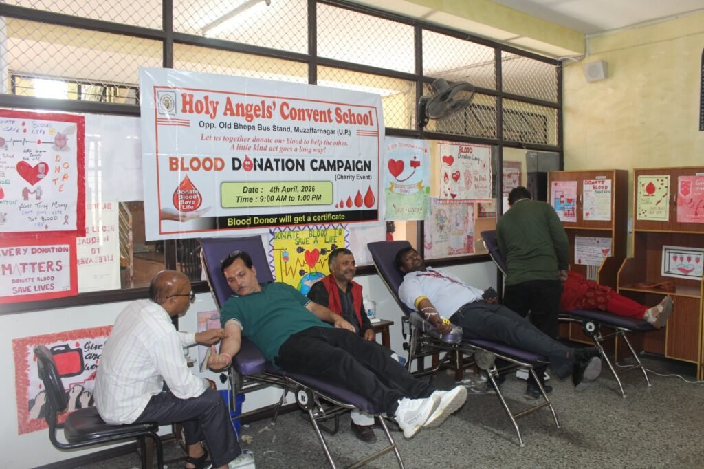 UP के मुजफ्फरनगर मे होली एंजेल्स कॉन्वेंट स्कूल के 63 अभिभावकों व टीचर्स ने ब्लड डोनेट किया। हालांकि 100 से अधिक