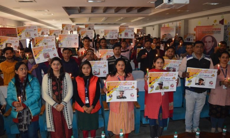मेरठ। राष्ट्रीय राजमार्ग बाईपास स्थित वेंक्टेश्वरा संस्थान के तत्वावधान में संचालित डिफेंस एवं पुलिस कैरियर एकेडमी वेंक्टेश्वरा योद्धा मिलिट्री एवं पुलिस ट्रेनिंग एकादमी (वियम्पा) में पुलवामा अटैक की तीसरी बरसी पर इस हमले में मारे गये 40 सीआरपीएफ जवानों को नमन करते हुए दीये जलाकर श्रद्धांजलि सभा का आयोजन किया गया। इसके साथ ही देश के एक दर्जन से अधिक विख्यात कवियों ने एक साथ जुड़कर अपनी देशभाक्त से ओतप्रोत रचनाएं सुनाकर उनको श्रद्धा सुमन अर्पित किये।