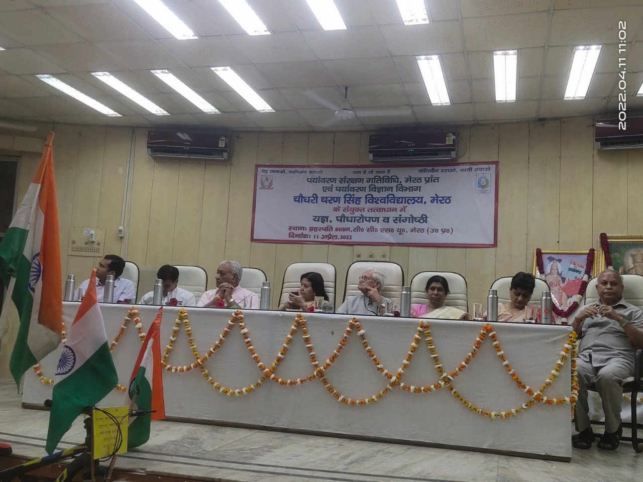 मेरठ। पर्यावरण संरक्षण गतिविधि राष्ट्रीय स्वयं सेवक संघ मेरठ प्रांत एवं सीसीएसयू के पर्यवारण विज्ञान विभाग के संयुक्त तत्वावधान में विश्वविद्यालय के ब्रहस्पति भवन के प्रांगण में 11 कुंडीय यज्ञ, पीपल के पौधों का पौधारोपन एवं पर्यावरण संरक्षण संगोष्ठी का आयोजन किया गया।